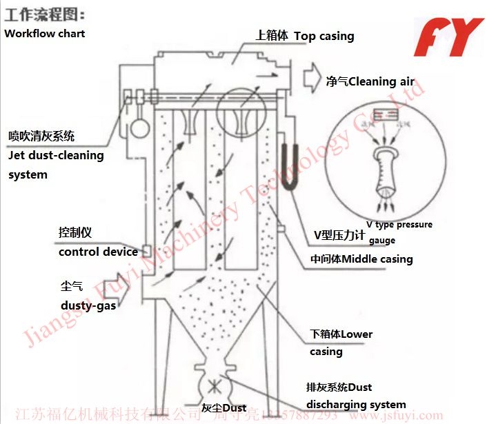 过滤风速是决定收尘器性能的一个很重要参数,也是衡量袋式收尘器先进性的一个重要参数。过滤风速与含尘气体的含尘浓度、灰尘颗粒粒度、应用场合、黏度、气体温度、水分含量和清灰方式有密切关系。当粉尘粒度较细,温度、湿度较高,浓度大,黏性较大时,过滤风速应取低些,反之可选高值。过滤风速过大,会加重滤袋负荷,增加过滤阻力,导致滤袋使用寿命短、效率低。