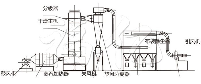 根据干燥物料的物性,主要考虑干燥产品水份、热敏性、选择干燥配套方式、多数产品选择闪蒸干燥基本配置方式能满足生产工艺要求,配套方式可参考系统配置选择图。