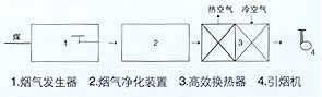 为了得到较为稳定的烟道气和降低劳动强度,燃煤采用链条炉排,并配有上煤机、出渣机等,经换热后的烟道气排空。