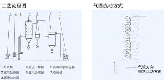 产品概述:旋流干燥机是利用气体旋转流动原理,在旋转流动中使热气体和固体颗粒充分接触,以达到干燥目的。