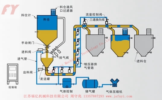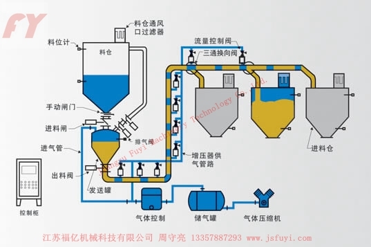 该种输送方式可分为分批投料或连续投料式输送系统,它由单一或多重发送罐、输送管线、管线增压器及电控部分等组成。